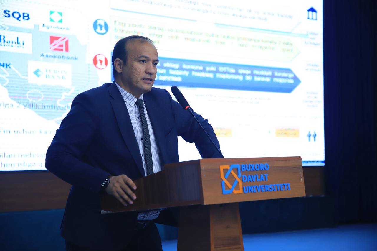 Bandlik va karyera bo'limi boshlig'i S.K.Hamidov, O'quv-uslubiy departamenti boshlig'i S.S.Davlatov hamda "O'zmilliybank" AJ Buxoro filiali rahbari o'rinbosari D.Ochilov bitiruvchilarning savollariga batafsil javoblar berib, kreditlarni olish jarayonida qanday yordam ko'rsatilishi haqida tushuntirishlar berdilar.