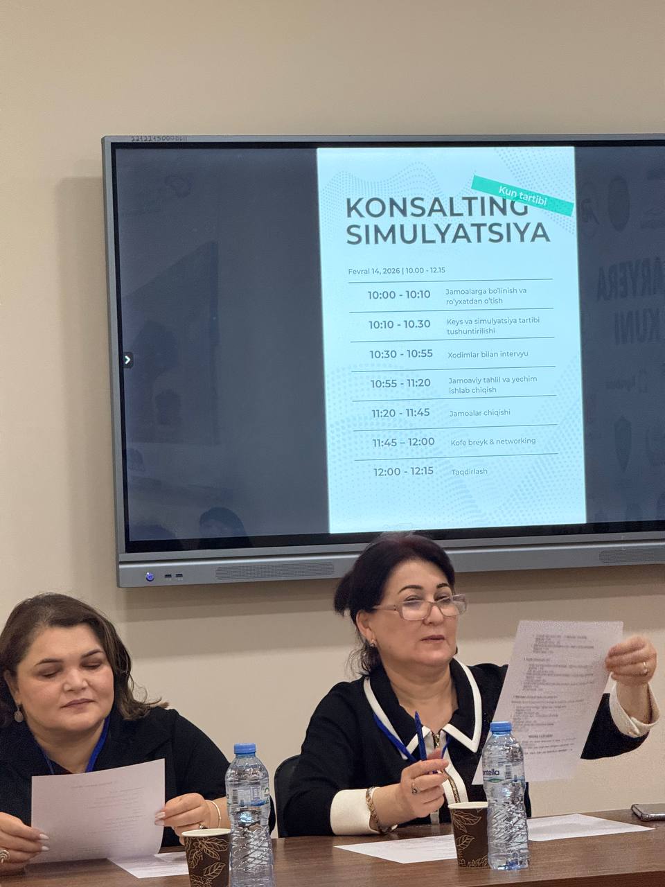 Tadbir shunchaki ma'ruza emas, balki interaktiv konsalting simulyatsiyasi formatida bo'lib o'tdi: