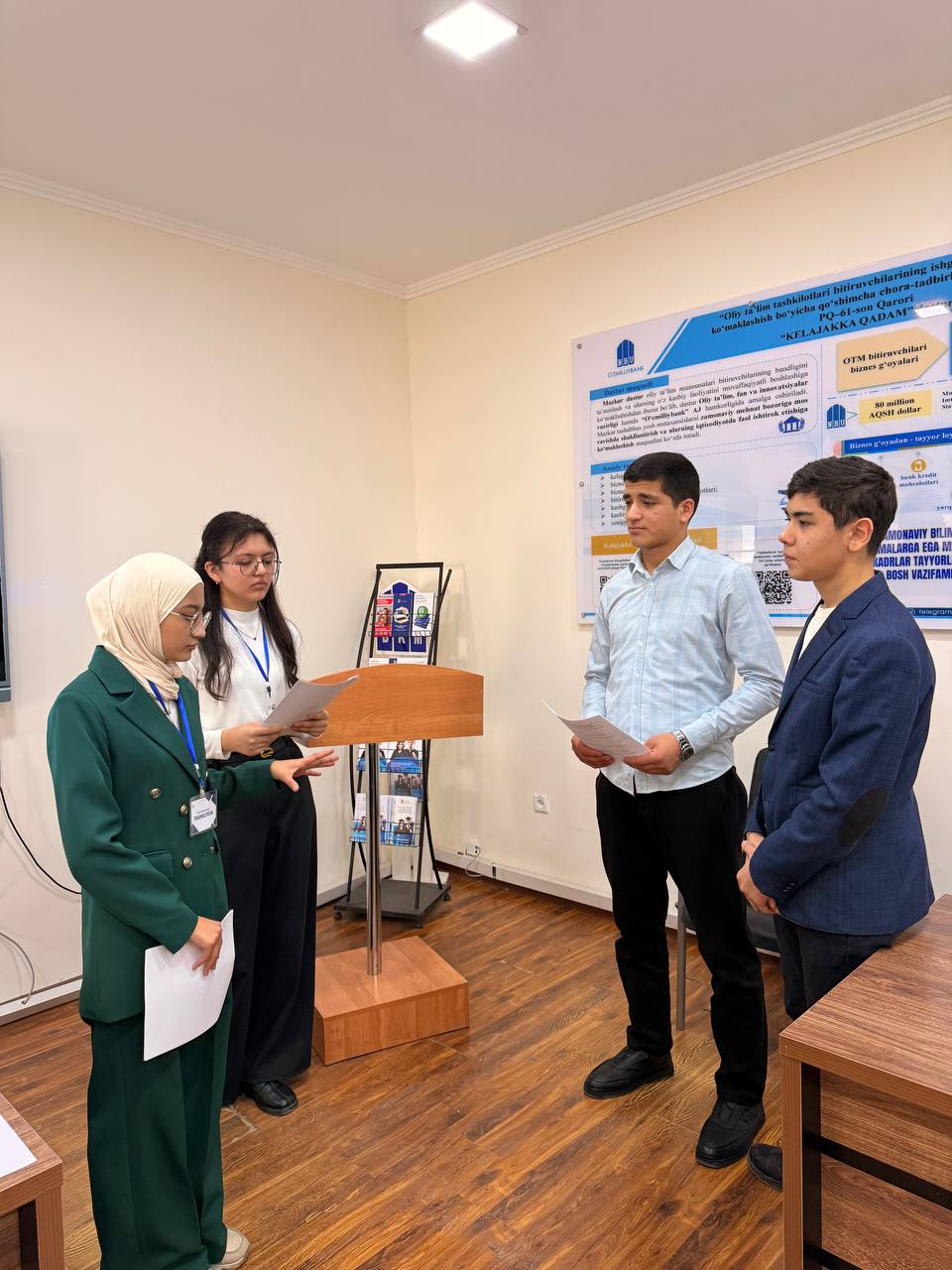 Ta'kidlash joizki, ushbu amaliy darsda Iqtisodiyot va turizm fakulteti talabasi Mushtariy Salimova tashabbus ko'rsatib, tengdoshlari uchun real biznes atmosferasini his qilish imkonini berdi.