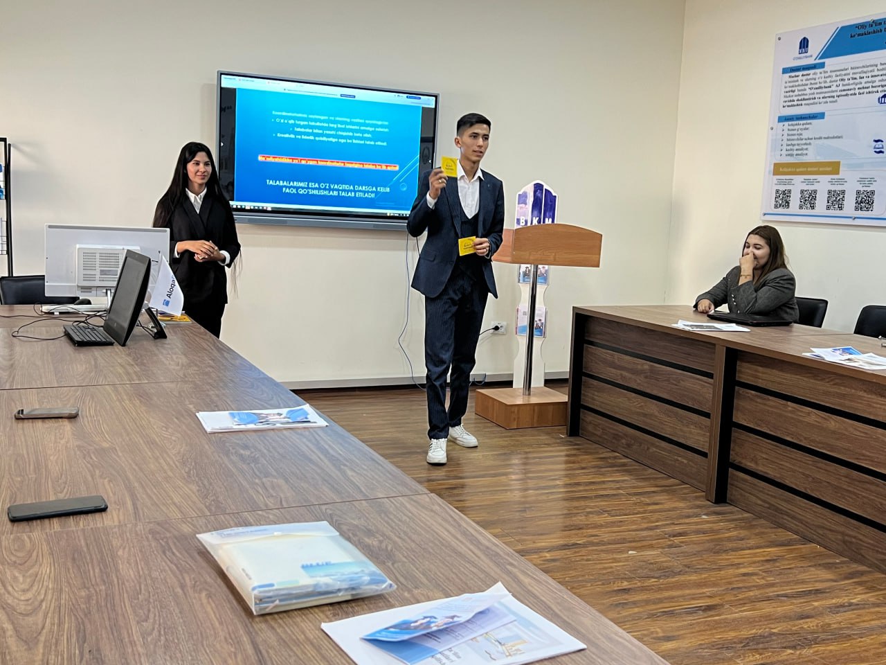 Bandlik va karyera bo‘limi mutaxassislari tomonidan talabalar uchun yaratilayotgan yangi imkoniyatlar, o‘quv jarayoni bilan bir qatorda amaliy tajriba orttirish yo‘llari, rezyume tuzish va intervyu jarayonlariga tayyorgarlik bo‘yicha foydali ma’lumotlar taqdim etildi.